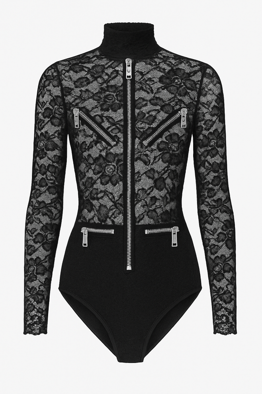 Lace & Suede Zippered Body Suit