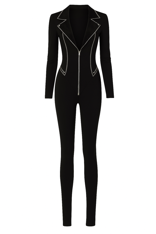 Black Suede Zippered Jumpsuit