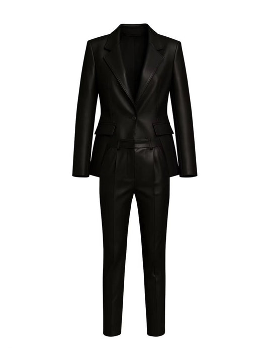 Black Vegan Leather Tailored Suit