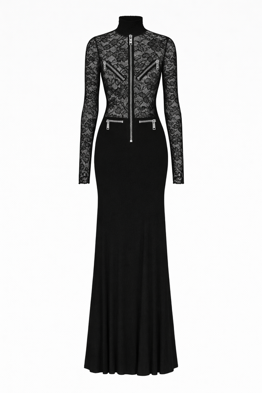 Lace & Vegan Suede Floor-Length Gown