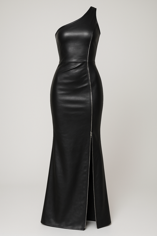 Vegan Leather Black Gown