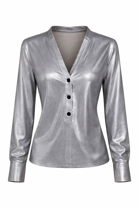 Metallic Long-Sleeve Blouse