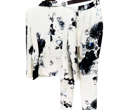 2 PIECE WHITE AND BLACK FLORAL SUIT