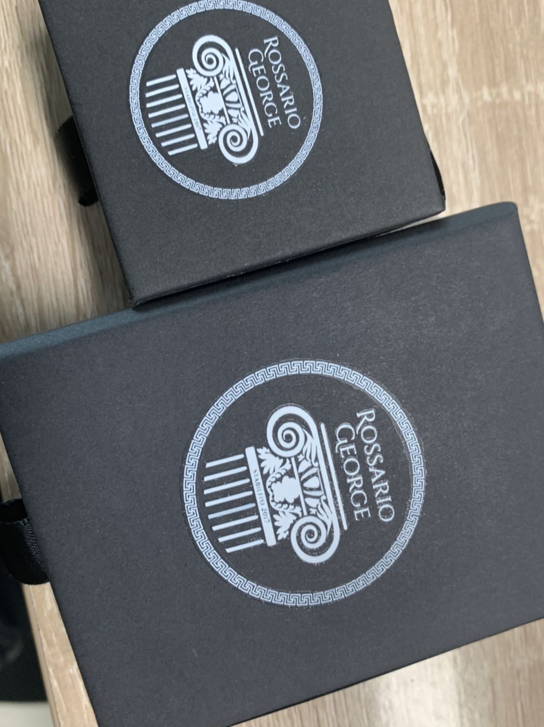 - Design: Oversized hoop earrings featuring the Rossario George logo in bold cutout lettering